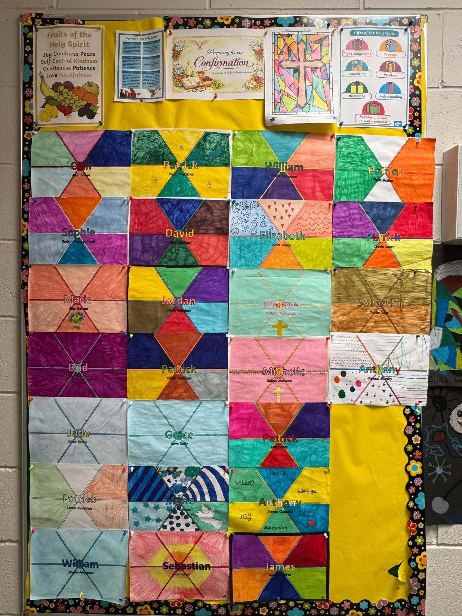 The children have been working very hard in Sixth Class to prepare for their confirmation. They are learning all about the Holy Spirit and Pentecost in preparation for their Confirmation on Wednesday, 4th March 2026. They have also been learning all about the gifts and the fruits of the Holy Spirit. They have all chosen their confirmation names and their sponsors for the big day!