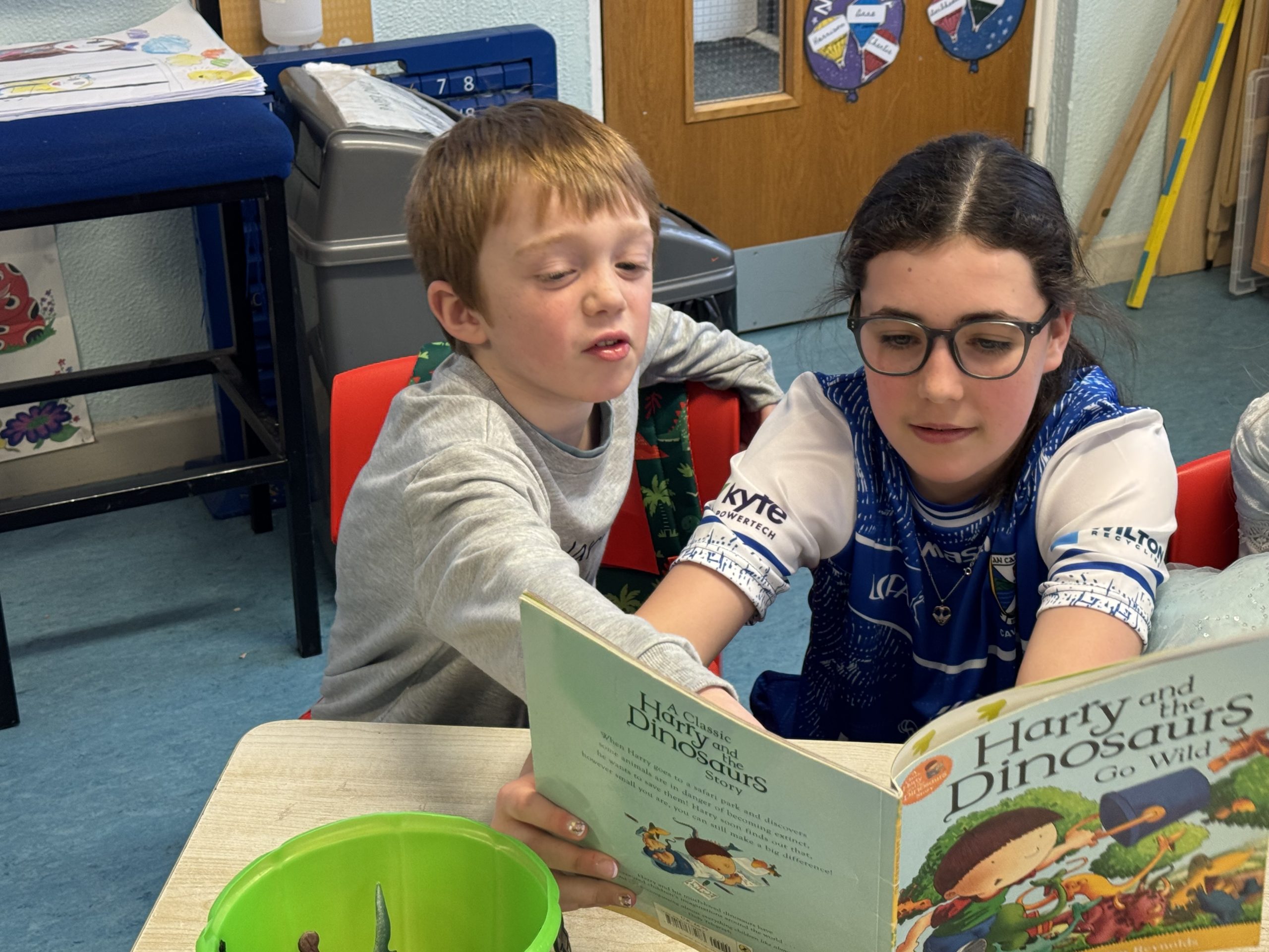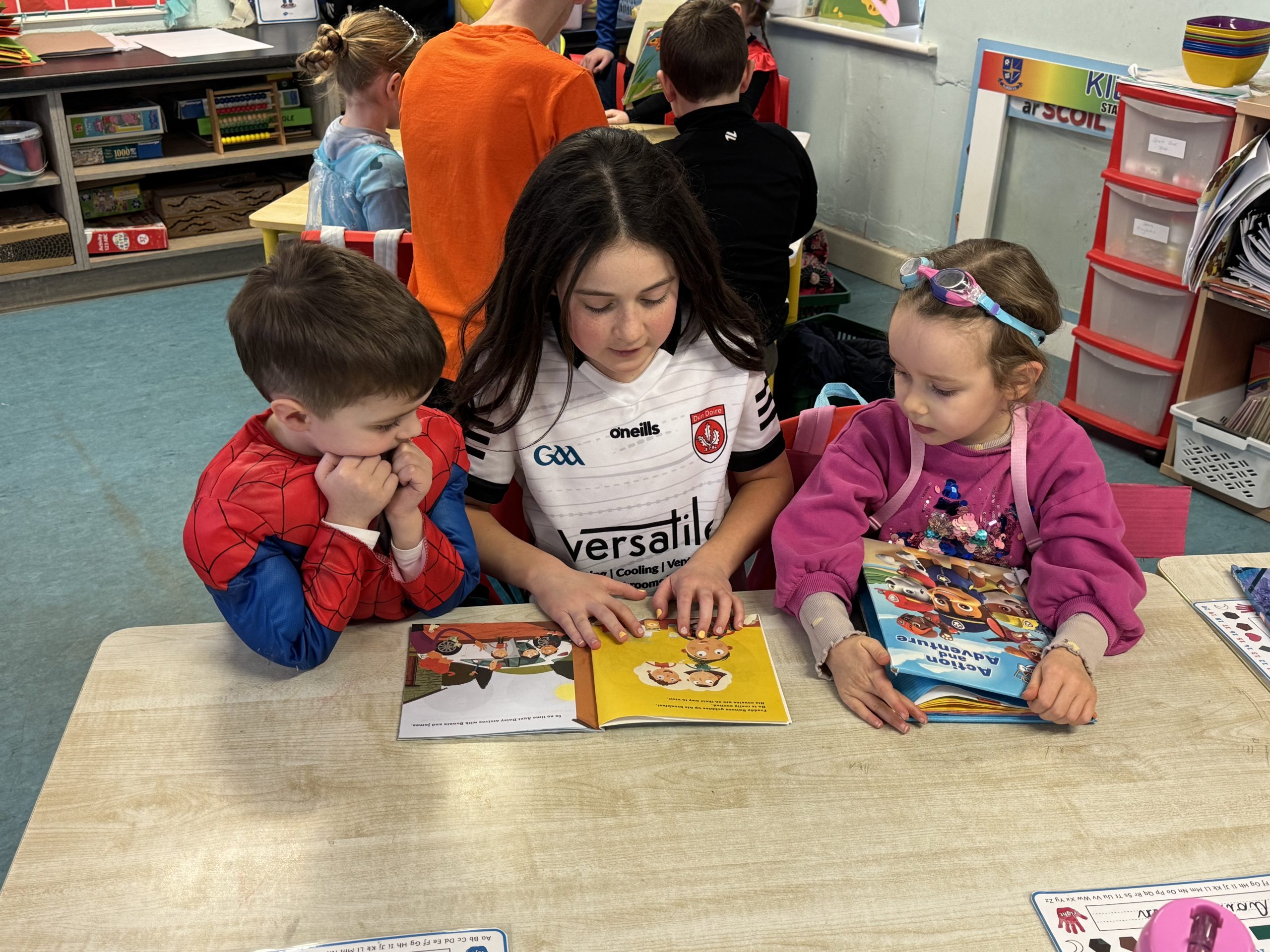 Fifth and Sixth Class joined up with Junior Infants today for World Book Day. The boys and girls in Fifth and Sixth read the Junior Infants a story for story time before home time. They all really enjoyed buddying up for story time today!