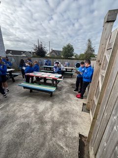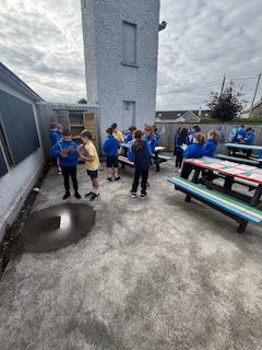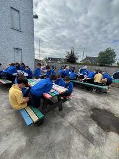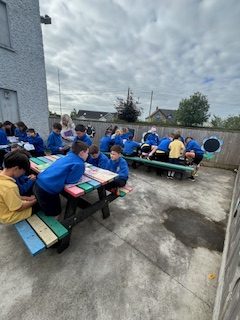 Fourth and Fifth class used our school's outdoor classdroom to read our Irish story and to introduce ourselves to each other 'as Gaeilge'. We are working on the theme 'Mé Féin'.